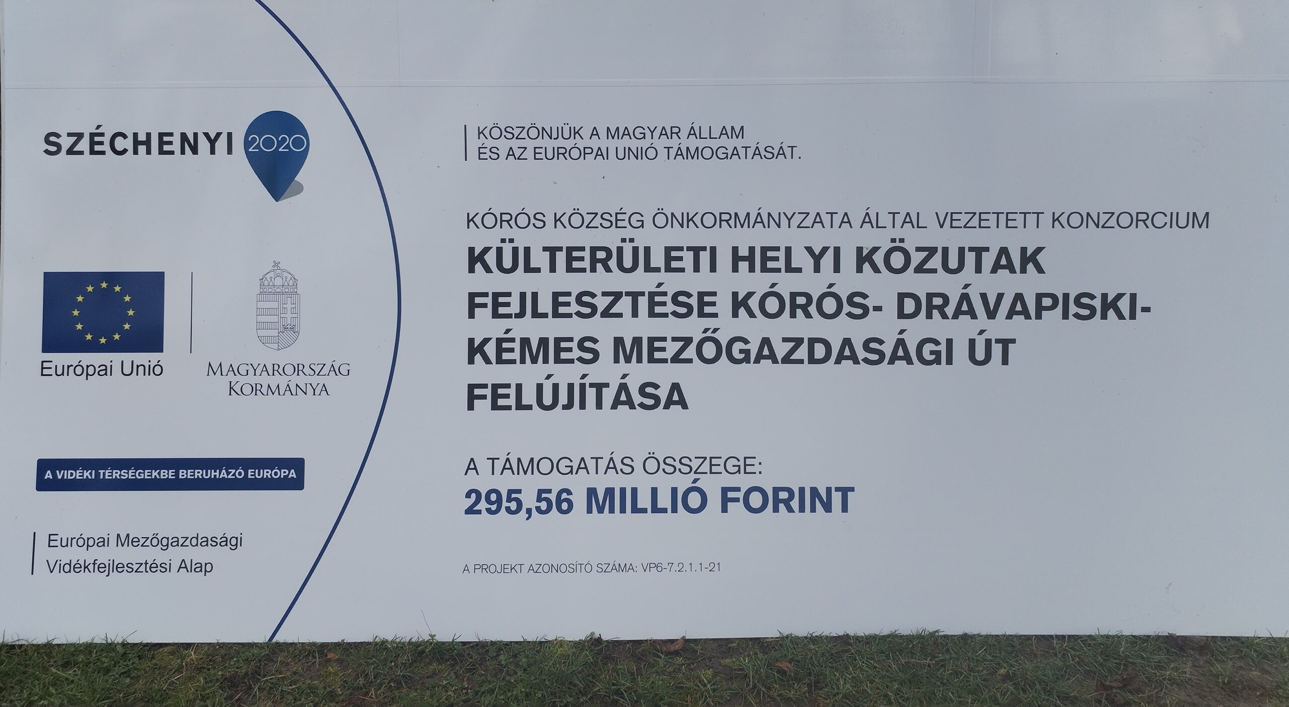 Főoldal / Pályázatok / Elkészült a Kórós- Drávapiski- Kémes mezőgazdasági út felújítása / köt.nyil. tábla